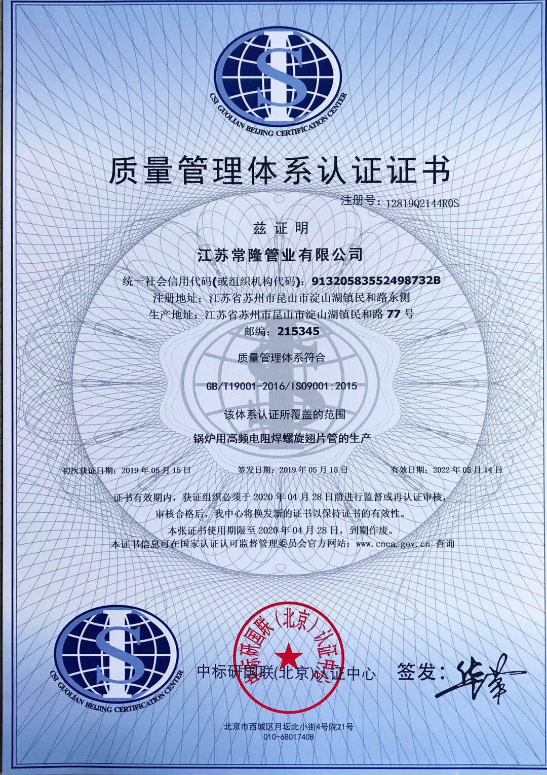 常隆营业执照